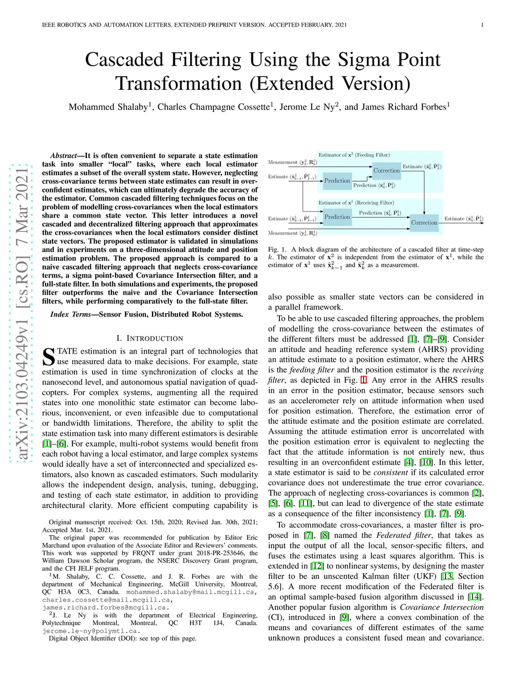 Cascaded Filtering Using the Sigma Point Transformation (Extended