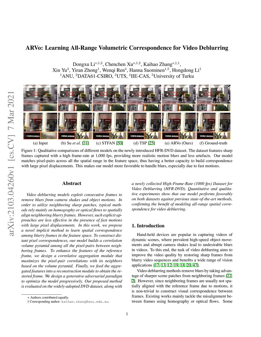 ARVo: Learning All-Range Volumetric Correspondence for Video Deblurring