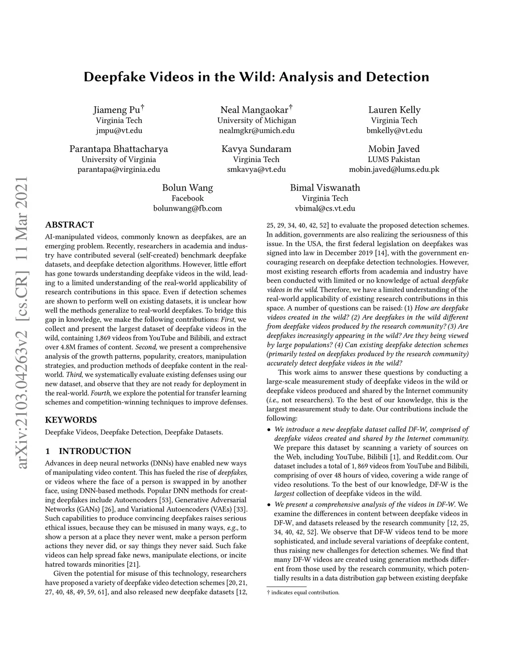 AI-manipulated videos, commonly known as deepfakes, are an emerging problem. Recently, researchers in academia and industry have contributed several (self-created) benchmark deepfake datasets, and deepfake detection algorithms. However, little effort has gone towards understanding deepfake videos in the wild, leading to a limited understanding of the real-world applicability of research contributions in this space. Even if detection schemes are shown to perform well on existing datasets, it is unclear how well the methods generalize to real-world deepfakes. To bridge this gap in knowledge, we make the following contributions: First, we collect and present the largest dataset of deepfake videos in the wild, containing 1,869 videos from YouTube and Bilibili, and extract over 4.8M frames of content. Second, we present a comprehensive analysis of the growth patterns, popularity, creators, manipulation strategies, and production methods of deepfake content in the real-world. Third, we systematically evaluate existing defenses using our new dataset, and observe that they are not ready for deployment in the real-world. Fourth, we explore the potential for transfer learning schemes and competition-winning techniques to improve defenses.
