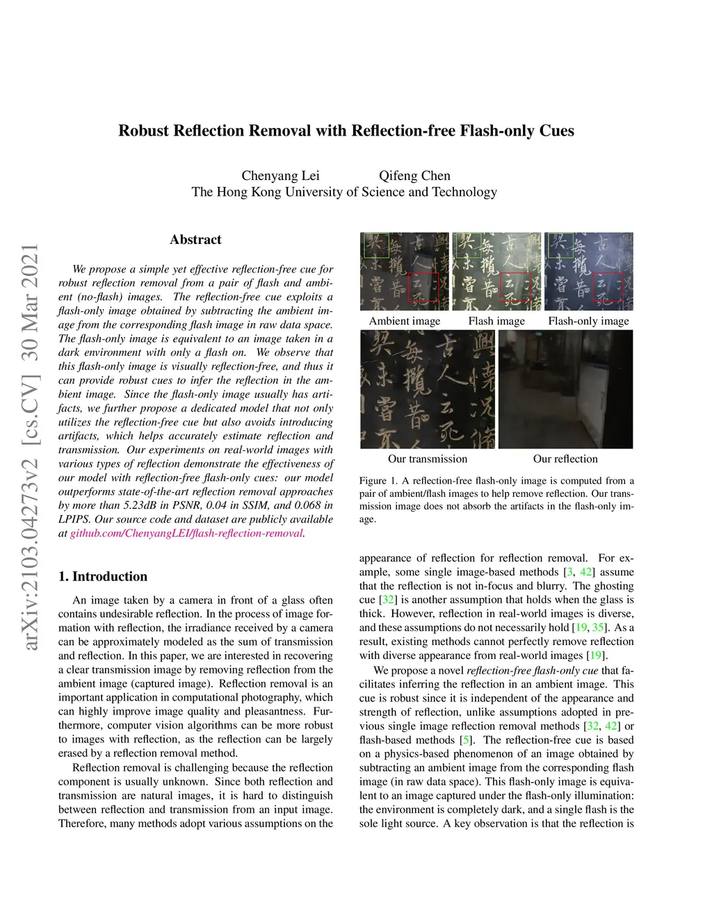 Robust Reflection Removal with Reflection-free Flash-only Cues