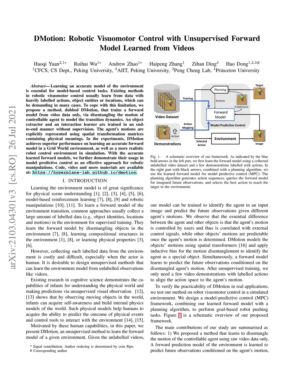 DMotion: Robotic Visuomotor Control with Unsupervised Forward Model