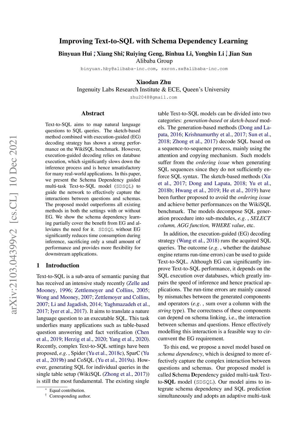 Text-to-SQL aims to map natural language questions to SQL queries. The sketch-based method combined with execution-guided (EG) decoding strategy has shown a strong performance on the WikiSQL benchmark. However, execution-guided decoding relies on database execution, which significantly slows down the inference process and is hence unsatisfactory for many real-world applications. In this paper, we present the Schema Dependency guided multi-task Text-to-SQL model (SDSQL) to guide the network to effectively capture the interactions between questions and schemas. The proposed model outperforms all existing methods in both the settings with or without EG. We show the schema dependency learning partially cover the benefit from EG and alleviates the need for it. SDSQL without EG significantly reduces time consumption during inference, sacrificing only a small amount of performance and provides more flexibility for downstream applications.