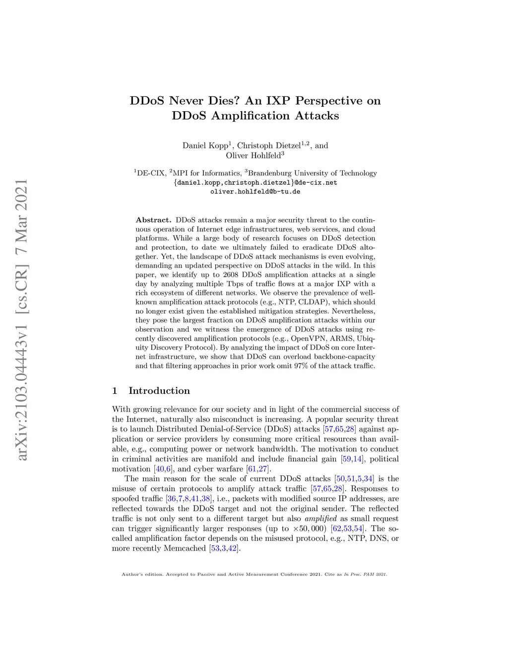 DDoS Never Dies? An IXP Perspective on DDoS Amplification Attacks