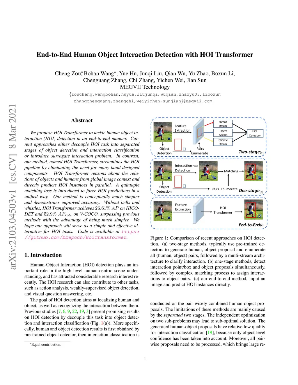 End-to-End Human Object Interaction Detection with HOI Transformer