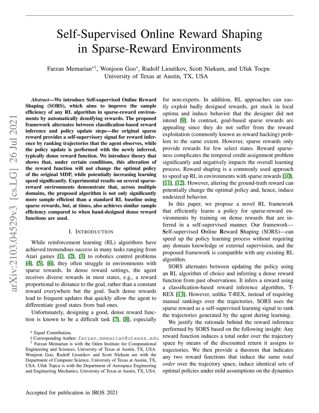 Self-Supervised Online Reward Shaping in Sparse-Reward Environments