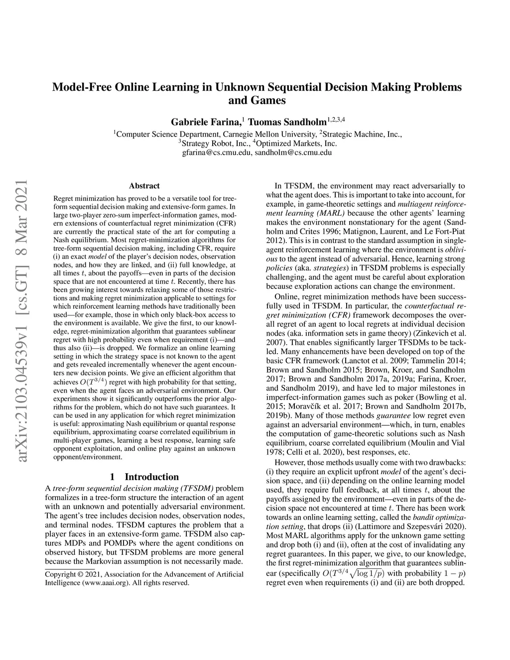 Model-Free Online Learning in Unknown Sequential Decision Making
