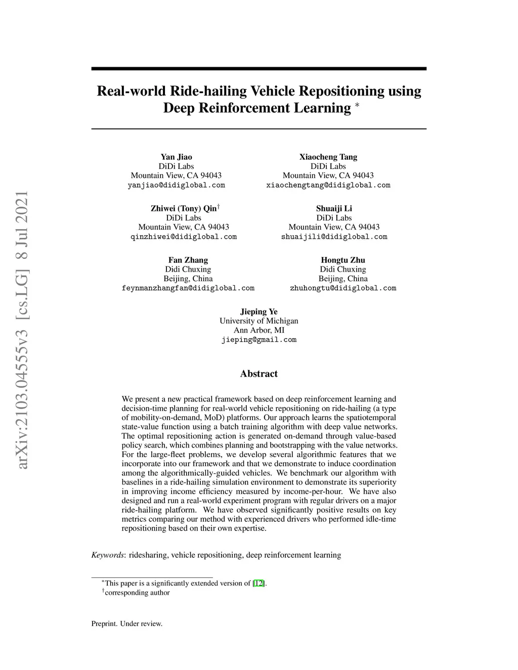 Real-world Ride-hailing Vehicle Repositioning using Deep Reinforcement