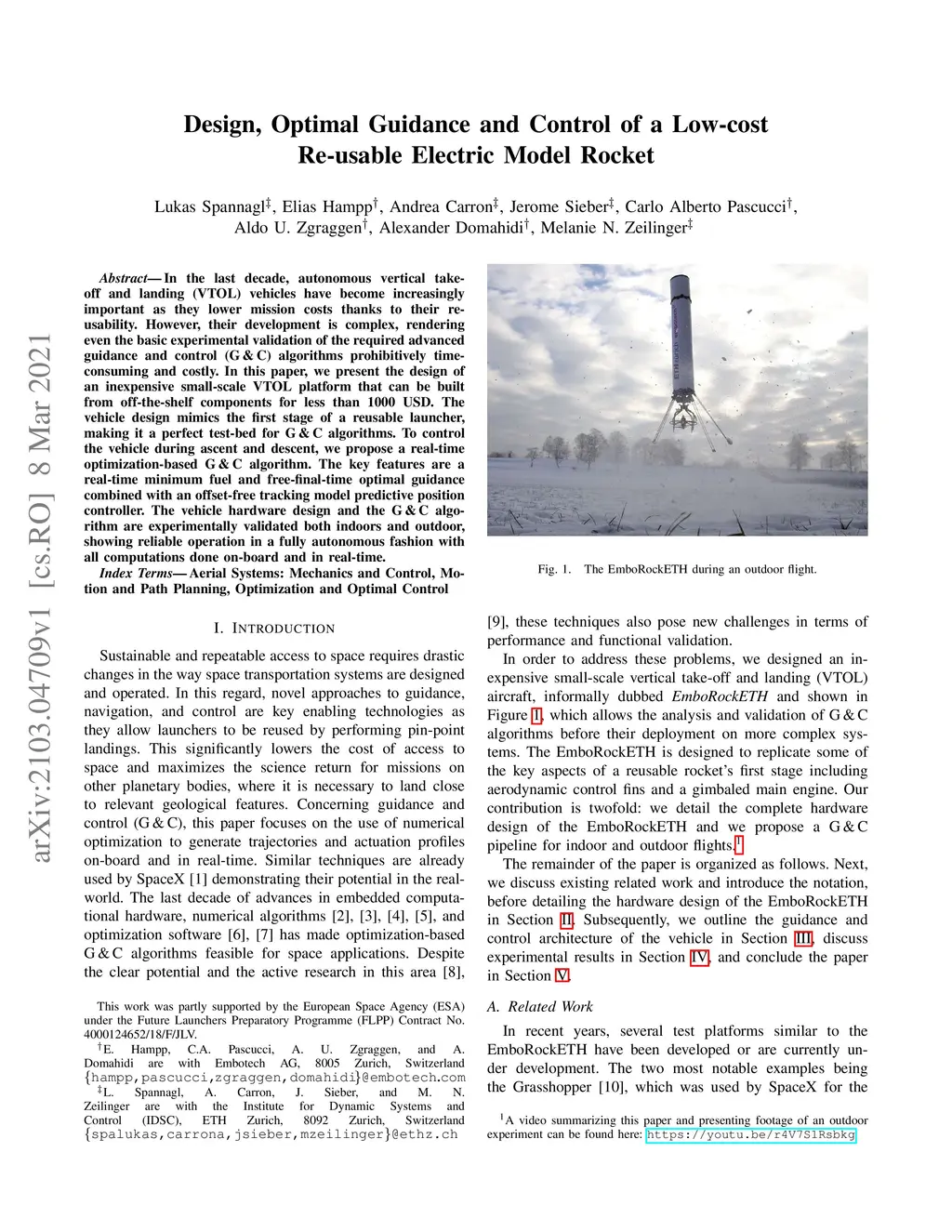 Design, Optimal Guidance and Control of a Low-cost Re-usable Electric