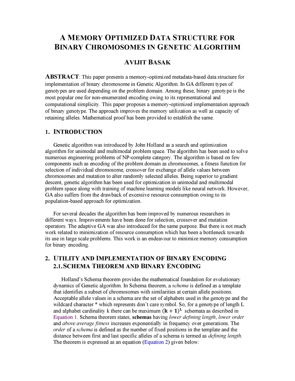 A Memory Optimized Data Structure for Binary Chromosomes in Genetic