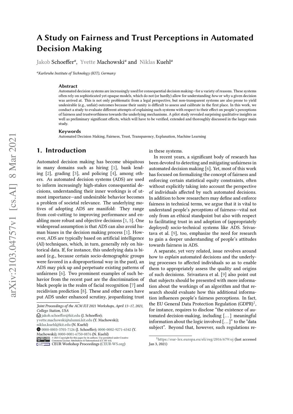 A Study on Fairness and Trust Perceptions in Automated Decision Making