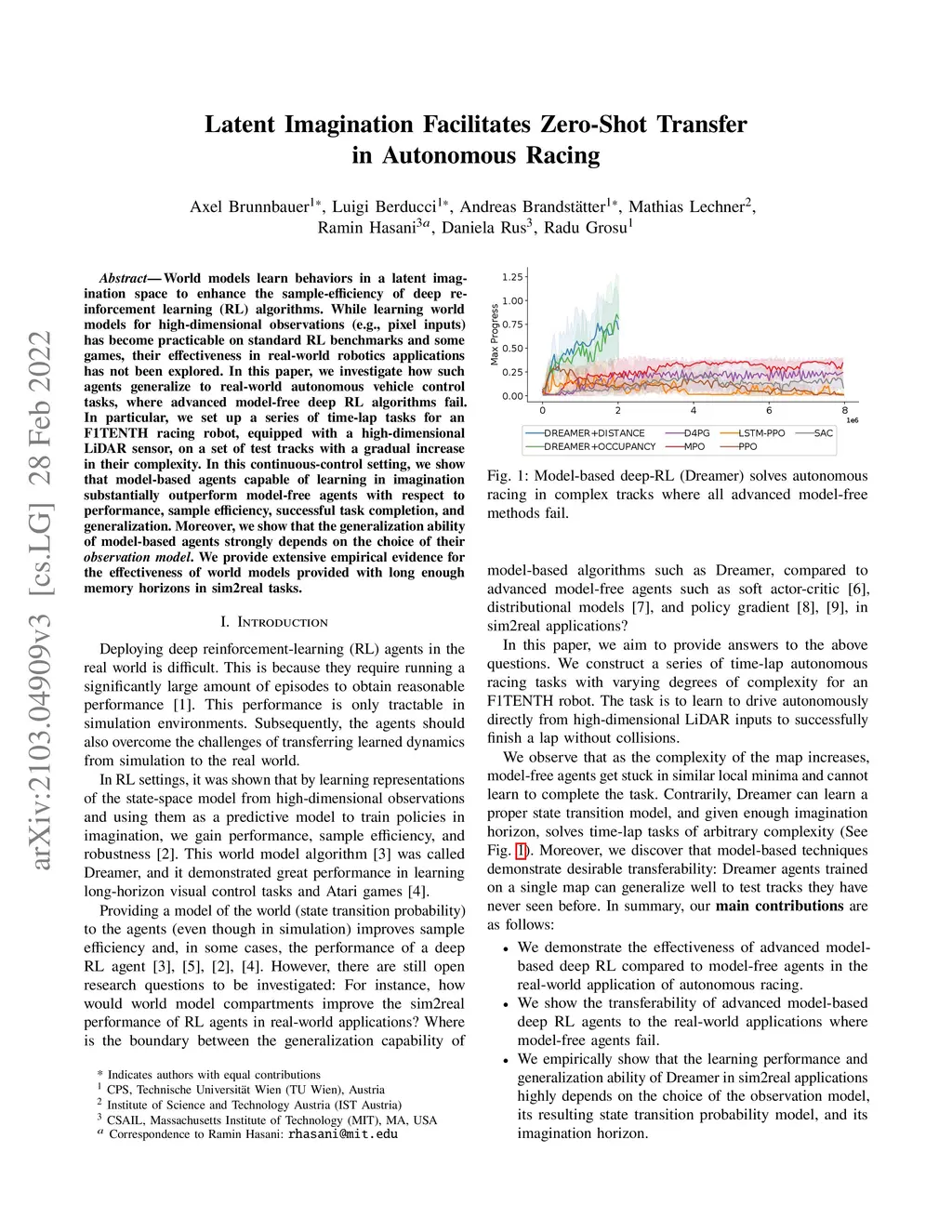 Latent Imagination Facilitates Zero-Shot Transfer in Autonomous Racing