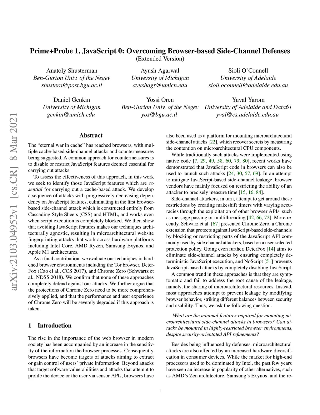 Prime+Probe 1, JavaScript 0: Overcoming Browser-based Side-Channel