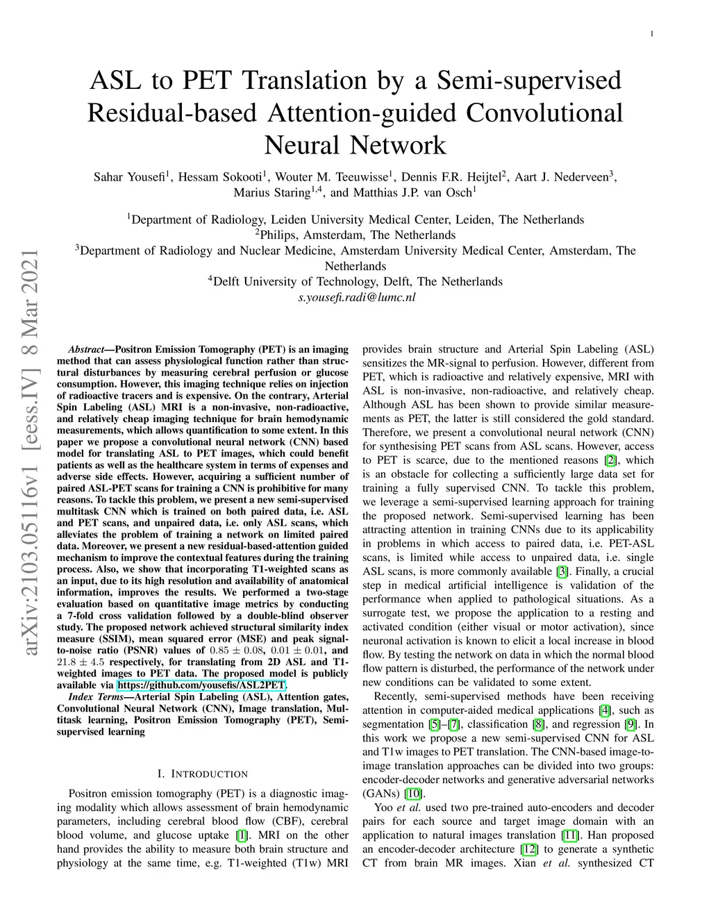 ASL to PET Translation by a Semi-supervised Residual-based