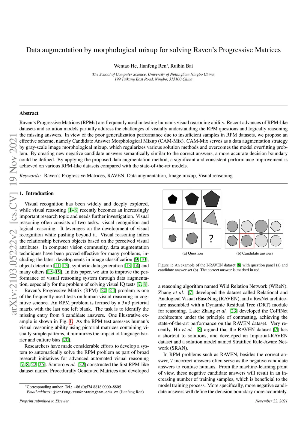Data augmentation by morphological mixup for solving Raven's Progressive