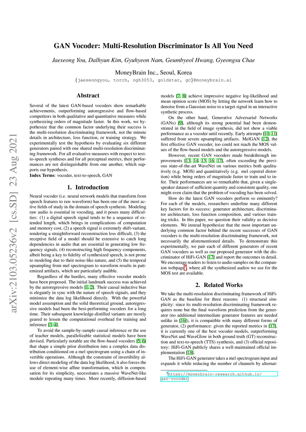 GAN Vocoder: Multi-Resolution Discriminator Is All You Need