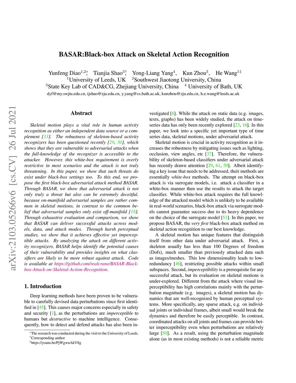 BASAR:Black-box Attack on Skeletal Action Recognition