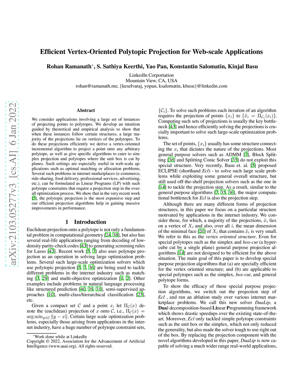 Efficient Vertex-Oriented Polytopic Projection for Web-scale
