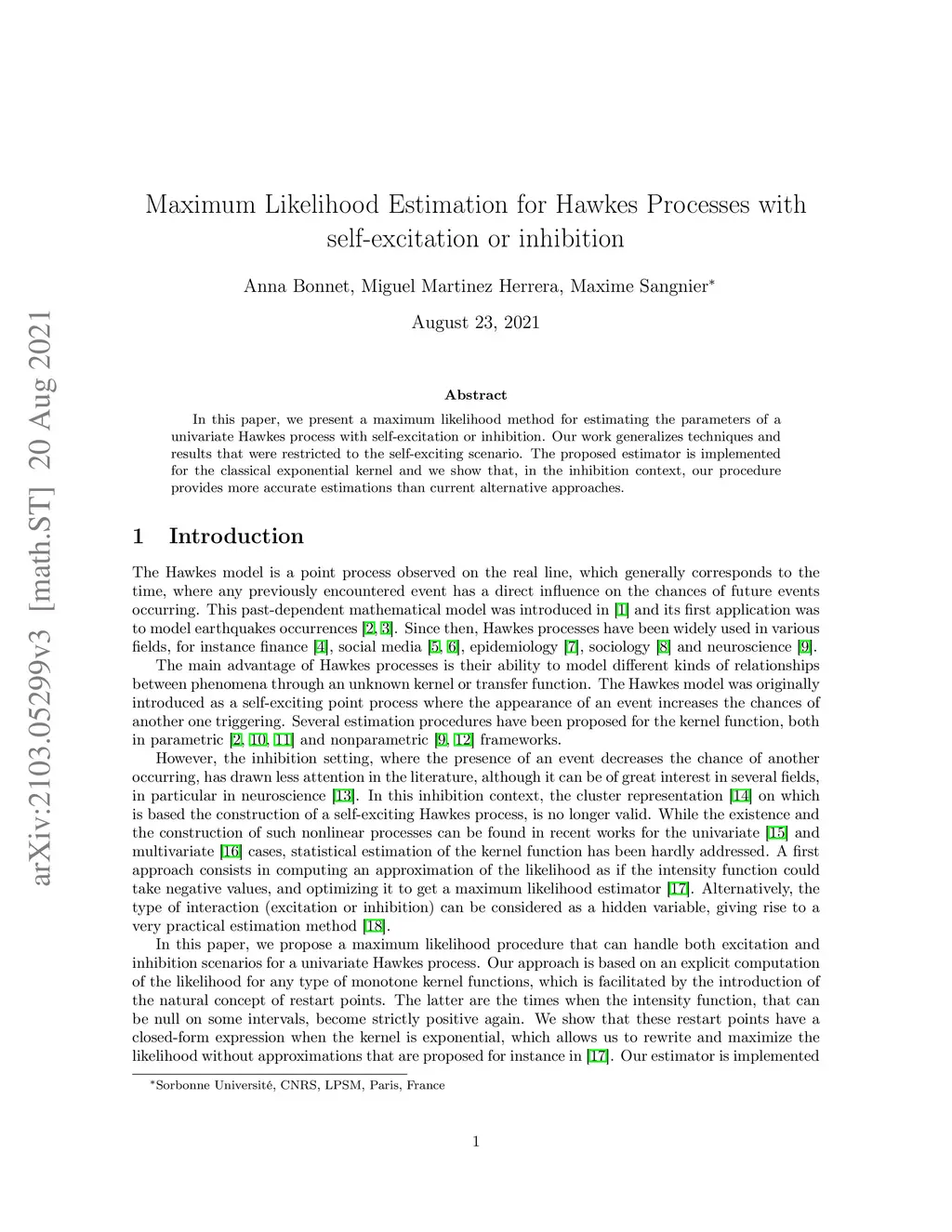 Maximum Likelihood Estimation for Hawkes Processes with self-excitation
