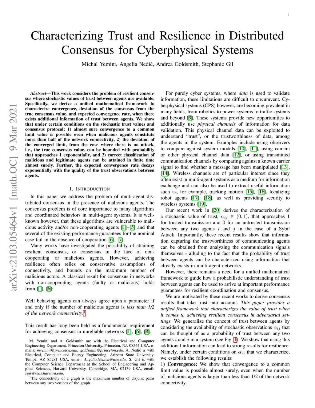 Characterizing Trust and Resilience in Distributed Consensus for Cyberphysical Systems