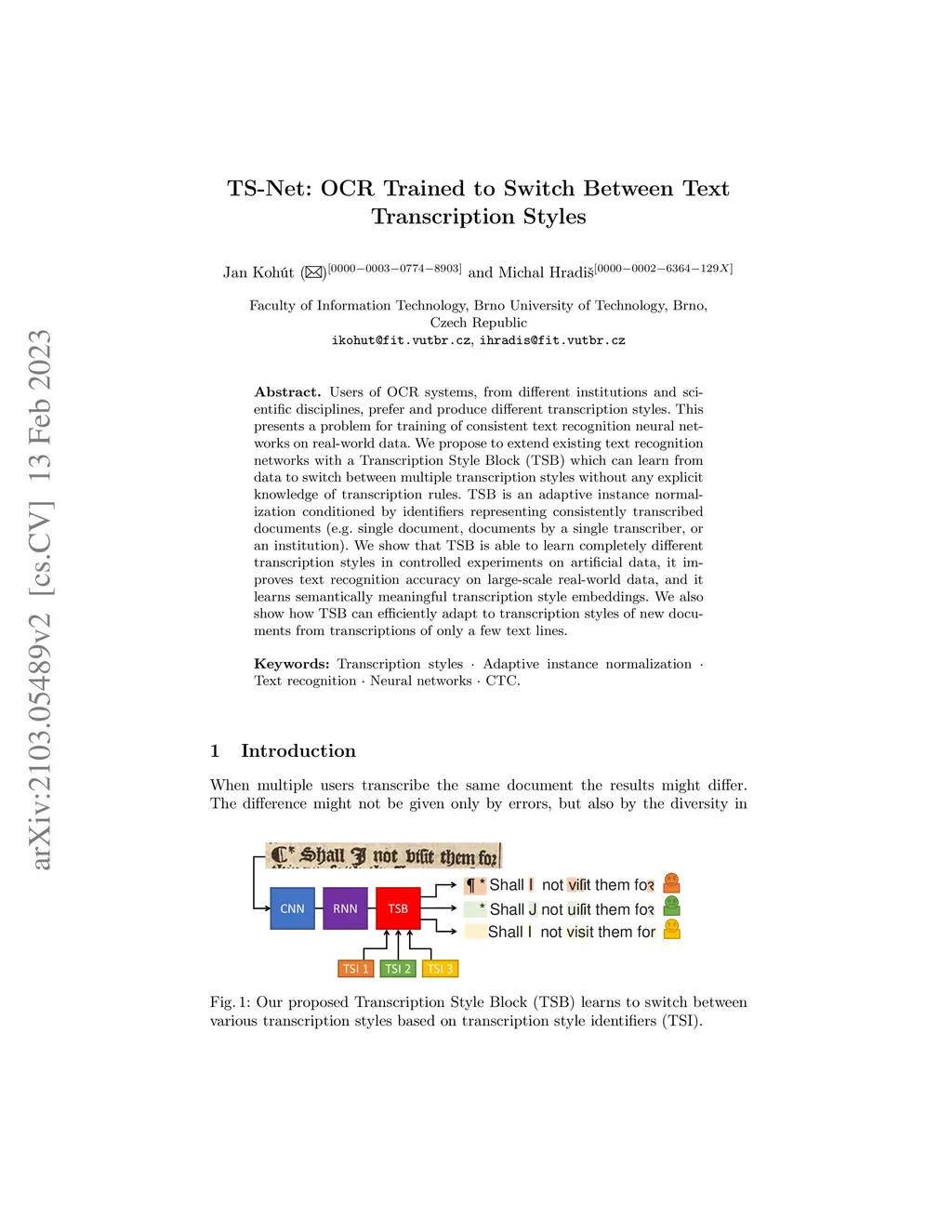TS-Net: OCR Trained to Switch Between Text Transcription Styles