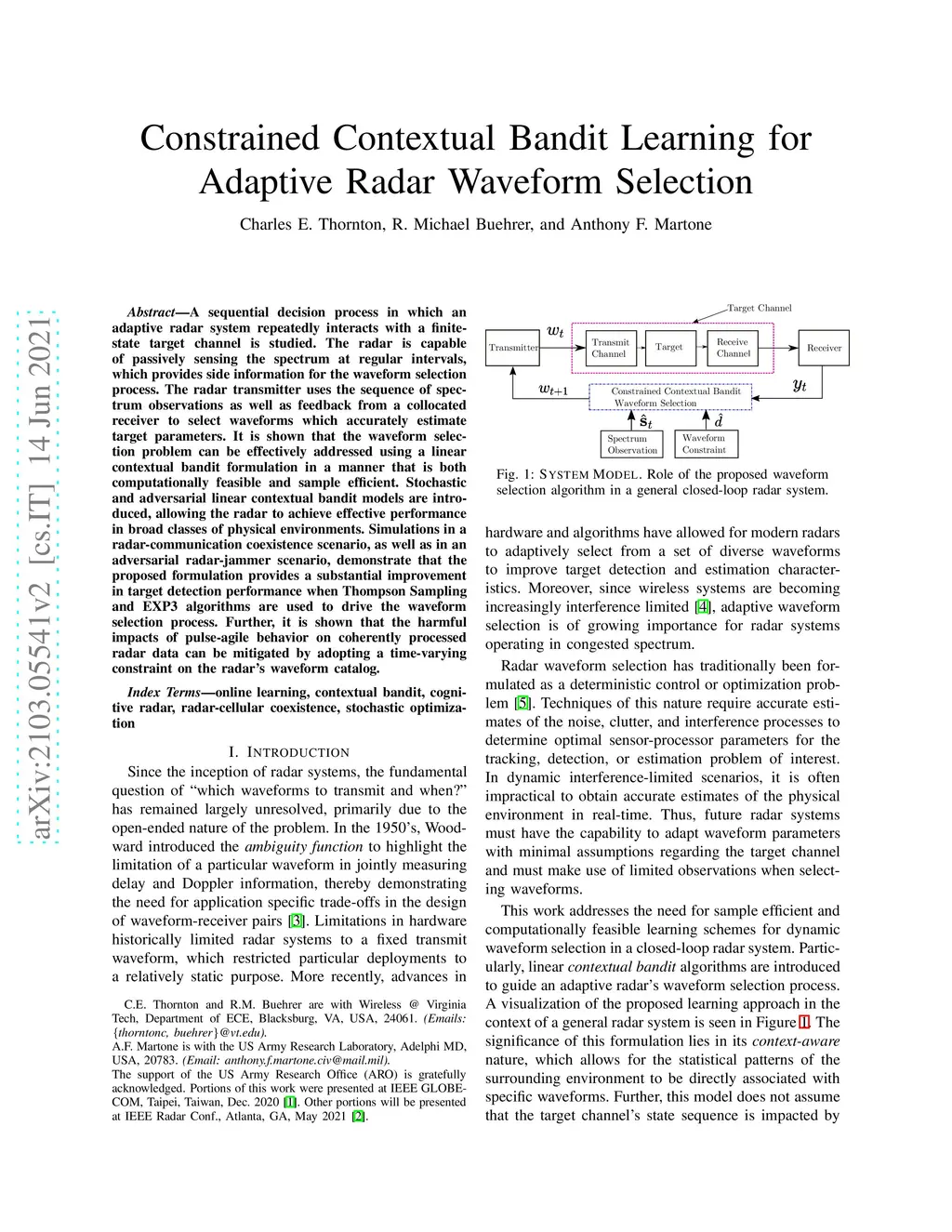 Constrained Contextual Bandit Learning for Adaptive Radar Waveform
