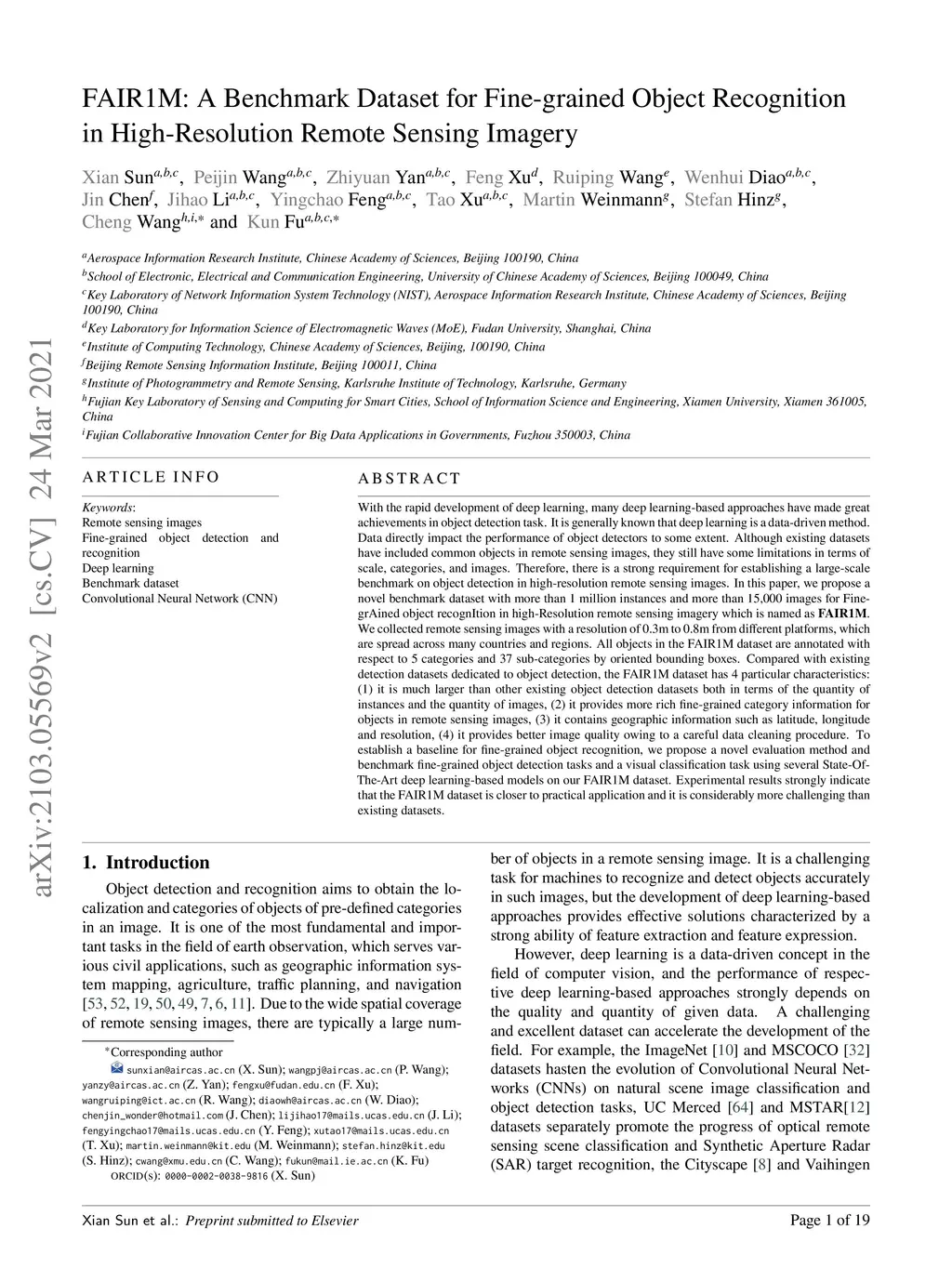 FAIR1M: A Benchmark Dataset for Fine-grained Object Recognition in