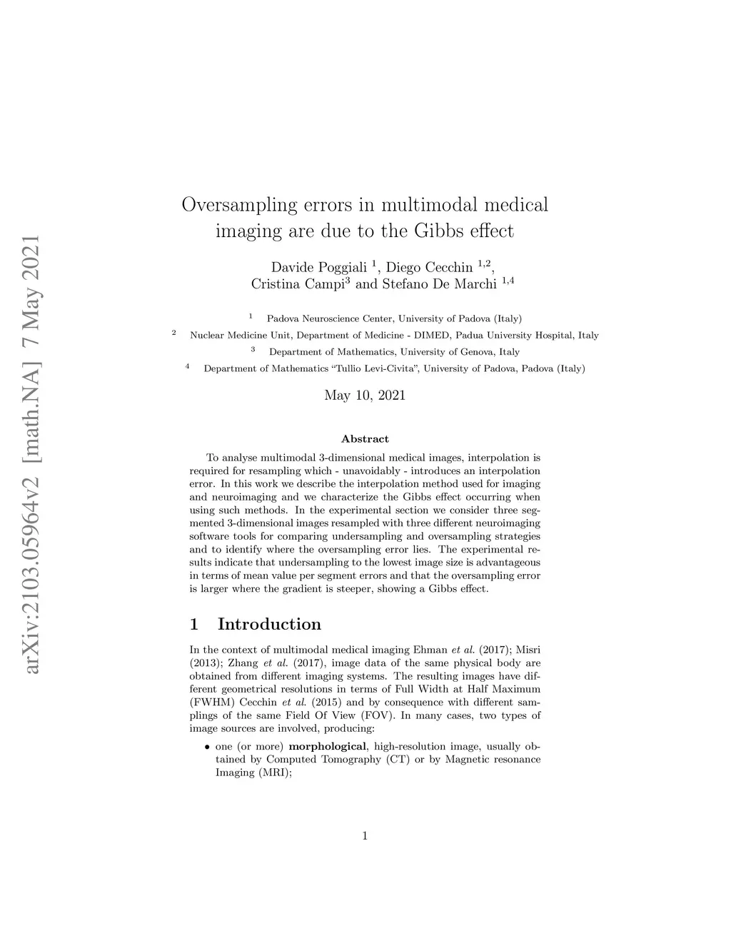 Oversampling errors in multimodal medical imaging are due to the Gibbs