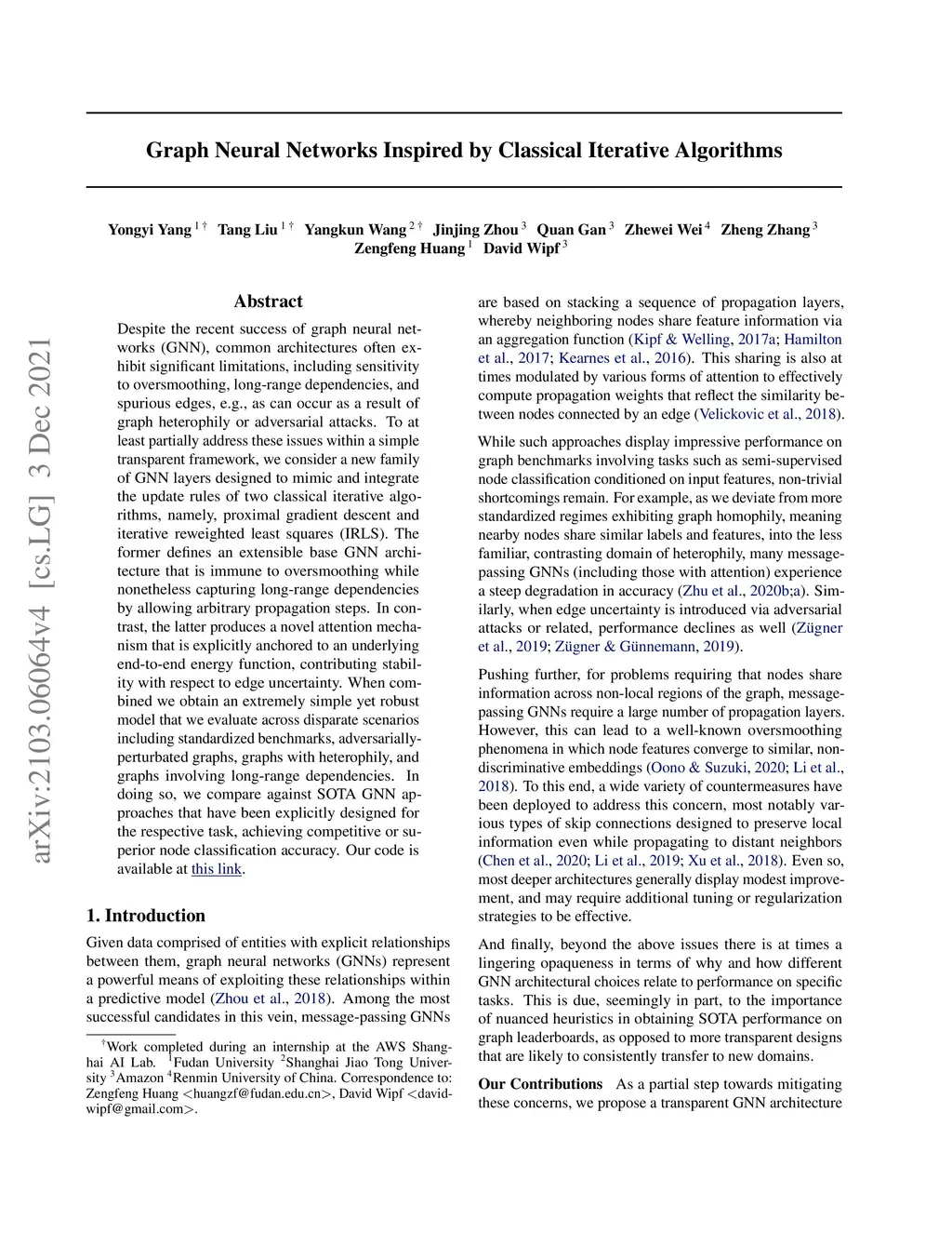 Despite the recent success of graph neural networks (GNN), common architectures often exhibit significant limitations, including sensitivity to oversmoothing, long-range dependencies, and spurious edges, e.g., as can occur as a result of graph heterophily or adversarial attacks. To at least partially address these issues within a simple transparent framework, we consider a new family of GNN layers designed to mimic and integrate the update rules of two classical iterative algorithms, namely, proximal gradient descent and iterative reweighted least squares (IRLS). The former defines an extensible base GNN architecture that is immune to oversmoothing while nonetheless capturing long-range dependencies by allowing arbitrary propagation steps. In contrast, the latter produces a novel attention mechanism that is explicitly anchored to an underlying end-to-end energy function, contributing stability with respect to edge uncertainty. When combined we obtain an extremely simple yet robust model that we evaluate across disparate scenarios including standardized benchmarks, adversarially-perturbated graphs, graphs with heterophily, and graphs involving long-range dependencies. In doing so, we compare against SOTA GNN approaches that have been explicitly designed for the respective task, achieving competitive or superior node classification accuracy. Our code is available at https://github.com/FFTYYY/TWIRLS.