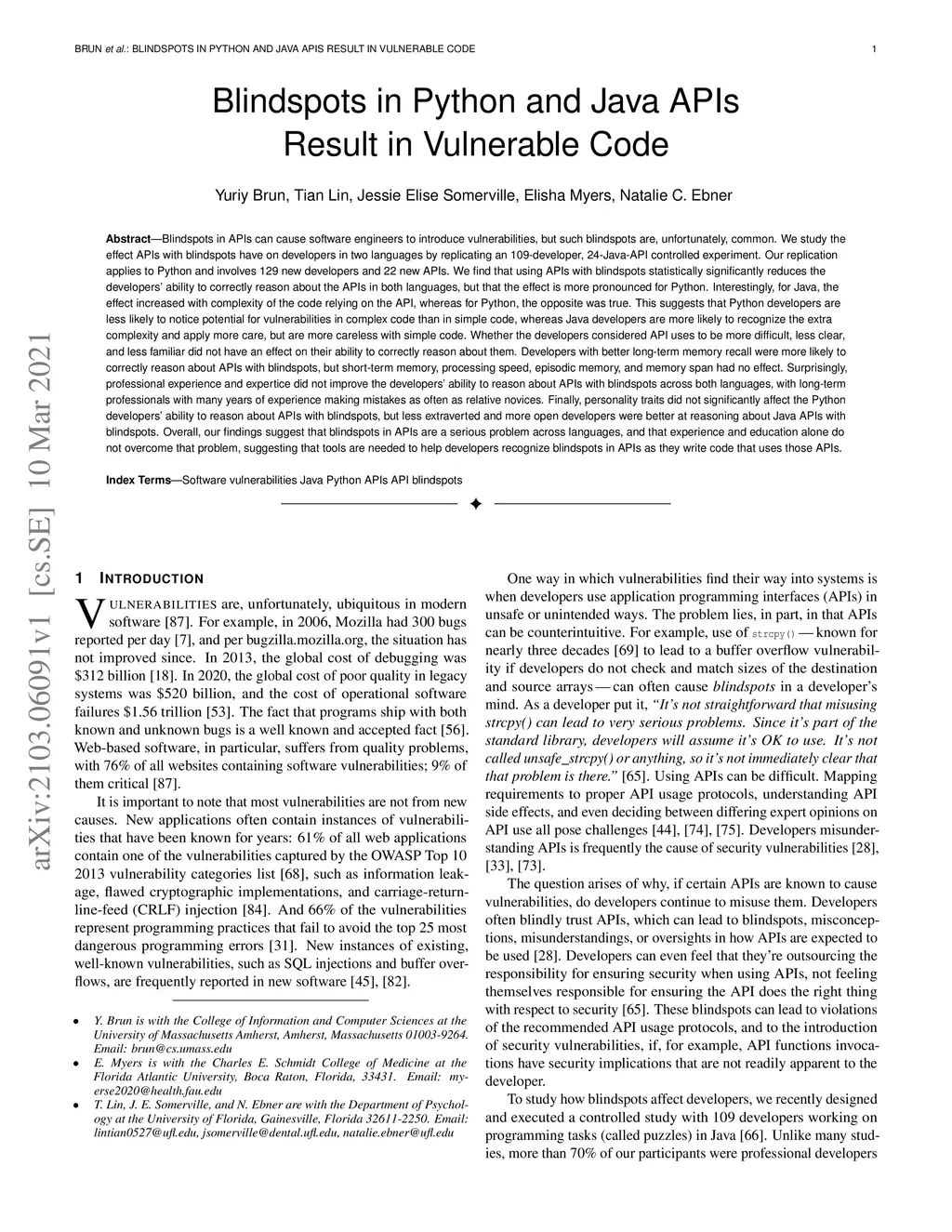 Blindspots in Python and Java APIs Result in Vulnerable Code