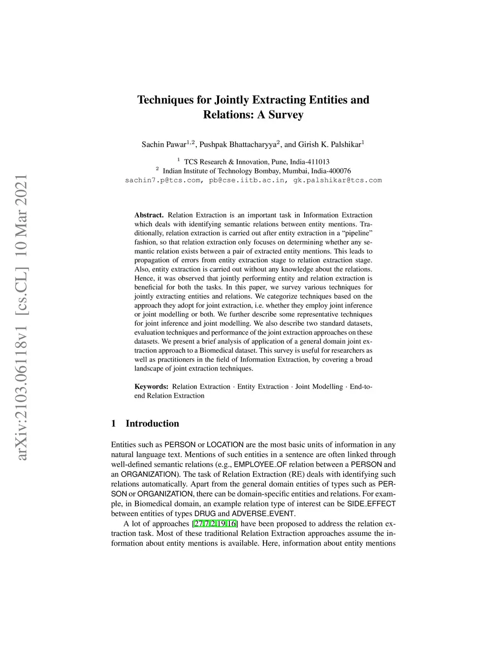 Techniques for Jointly Extracting Entities and Relations: A Survey