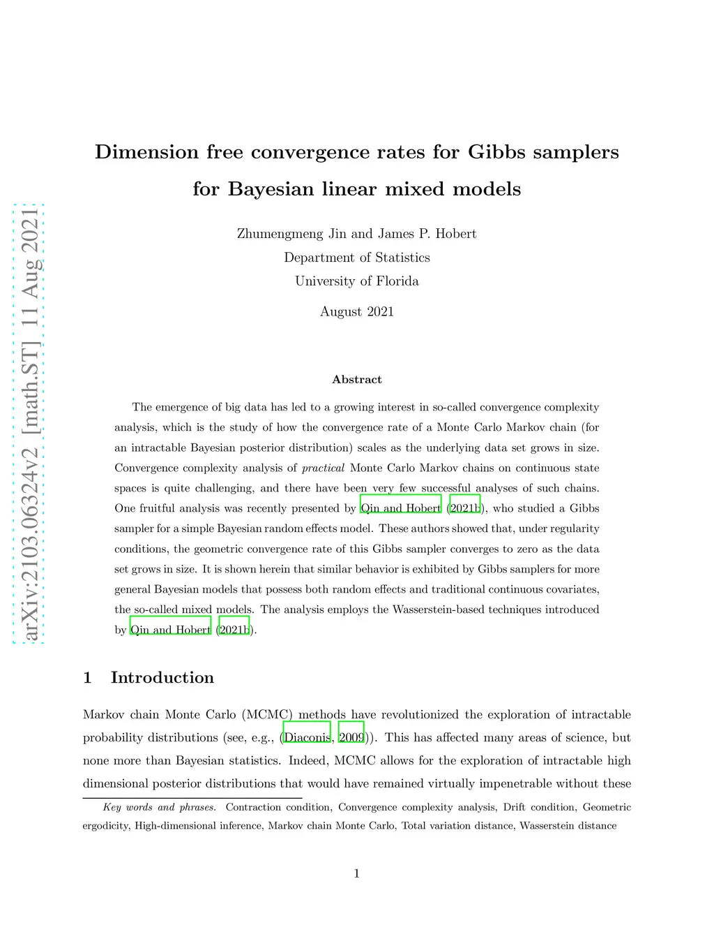 The emergence of big data has led to a growing interest in so-called convergence complexity analysis, which is the study of how the convergence rate of a Monte Carlo Markov chain (for an intractable Bayesian posterior distribution) scales as the underlying data set grows in size. Convergence complexity analysis of practical Monte Carlo Markov chains on continuous state spaces is quite challenging, and there have been very few successful analyses of such chains. One fruitful analysis was recently presented by Qin and Hobert (2021b), who studied a Gibbs sampler for a simple Bayesian random effects model. These authors showed that, under regularity conditions, the geometric convergence rate of this Gibbs sampler converges to zero as the data set grows in size. It is shown herein that similar behavior is exhibited by Gibbs samplers for more general Bayesian models that possess both random effects and traditional continuous covariates, the so-called mixed models. The analysis employs the Wasserstein-based techniques introduced by Qin and Hobert (2021b).