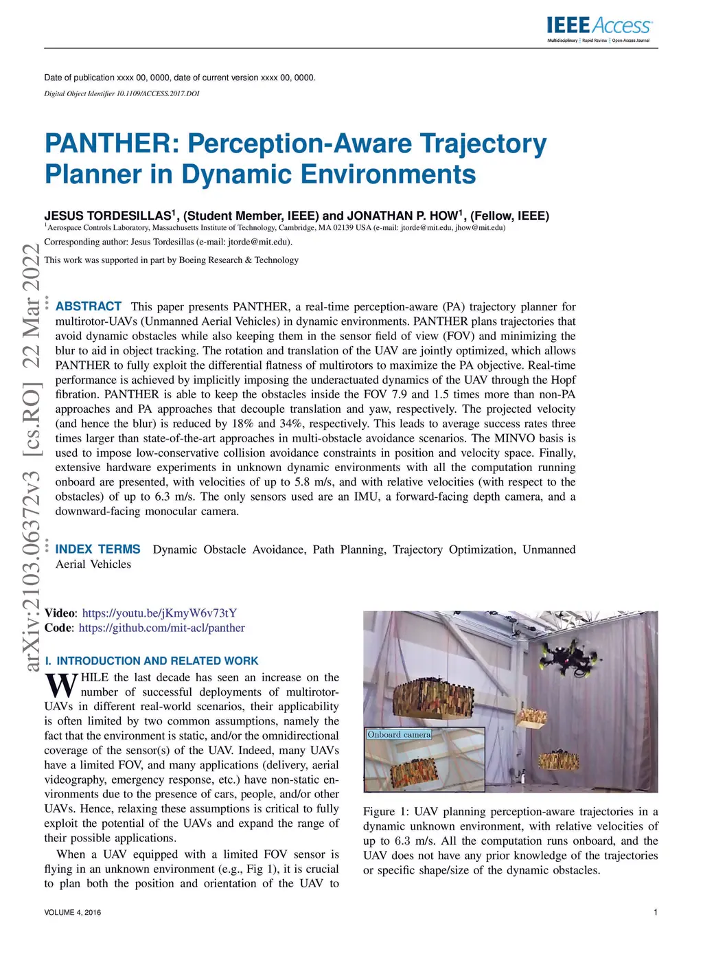PANTHER: Perception-Aware Trajectory Planner in Dynamic Environments