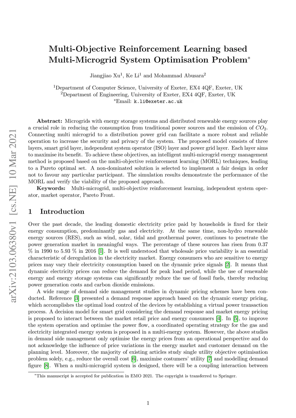 Multi-Objective Reinforcement Learning based Multi-Microgrid System