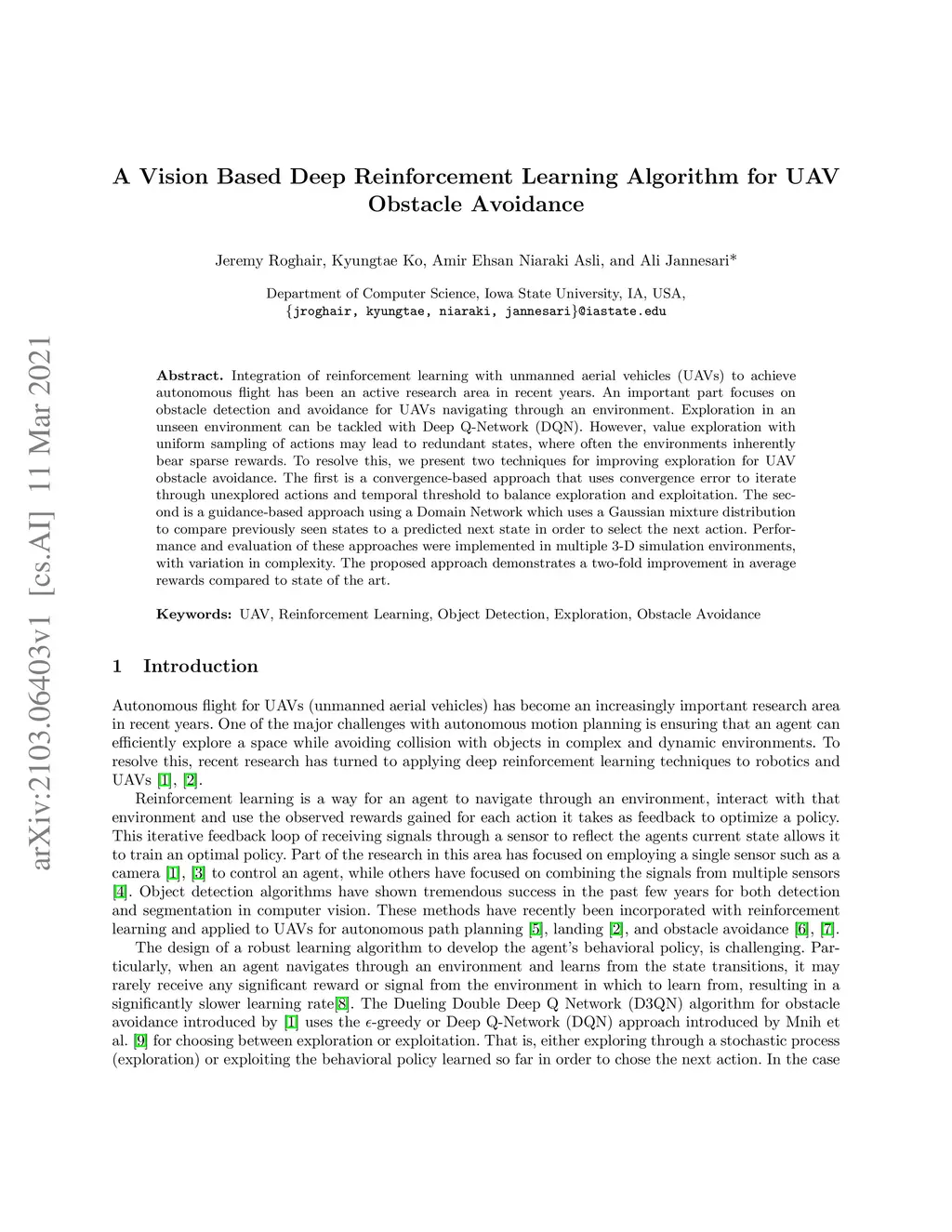 A Vision Based Deep Reinforcement Learning Algorithm for UAV Obstacle