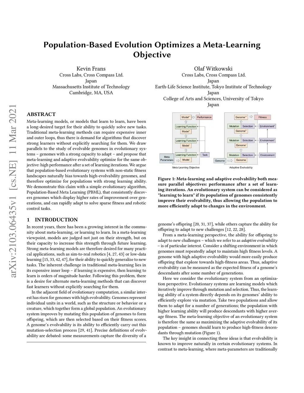 Population-Based Evolution Optimizes a Meta-Learning Objective