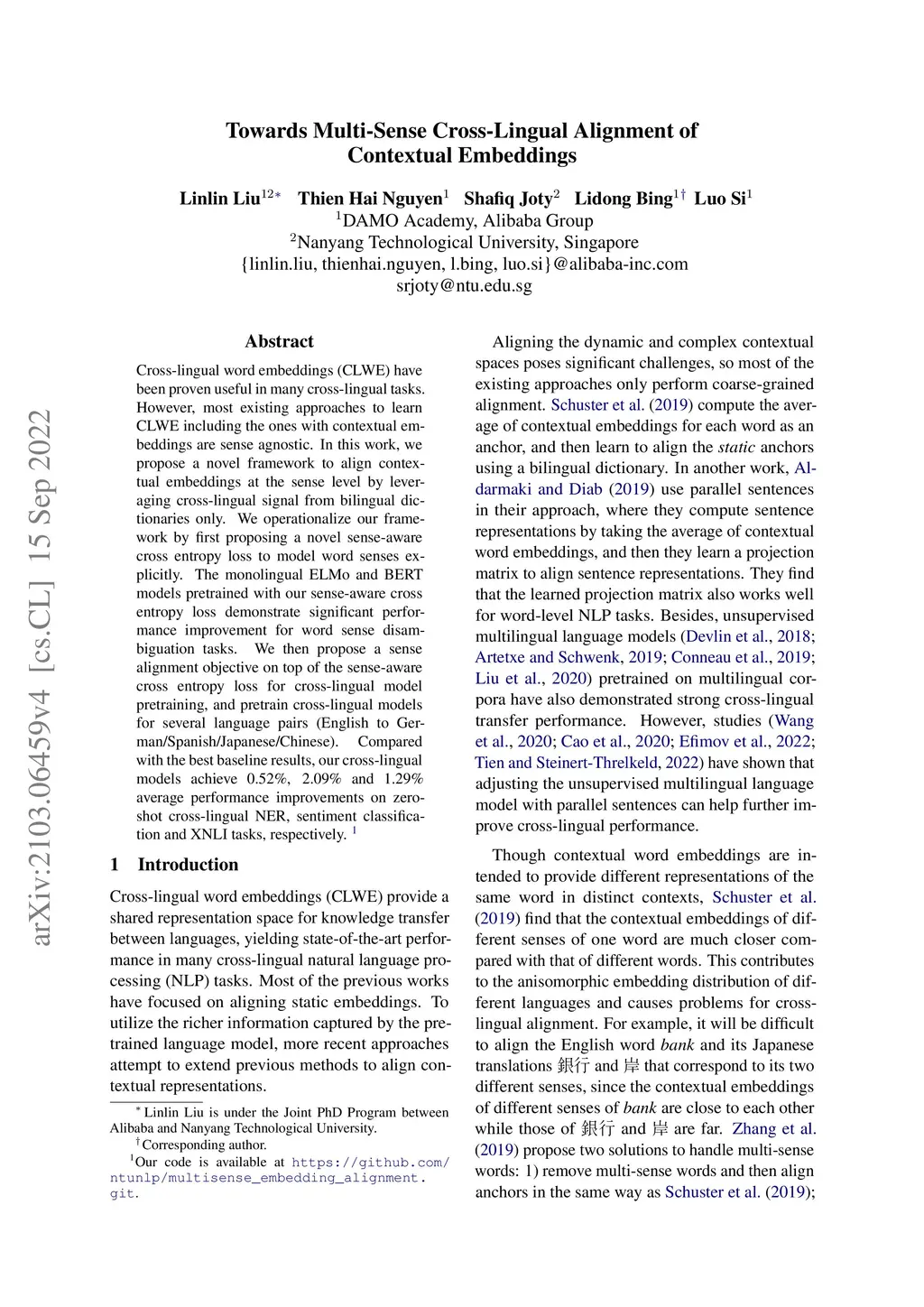 Towards Multi-Sense Cross-Lingual Alignment of Contextual Embeddings