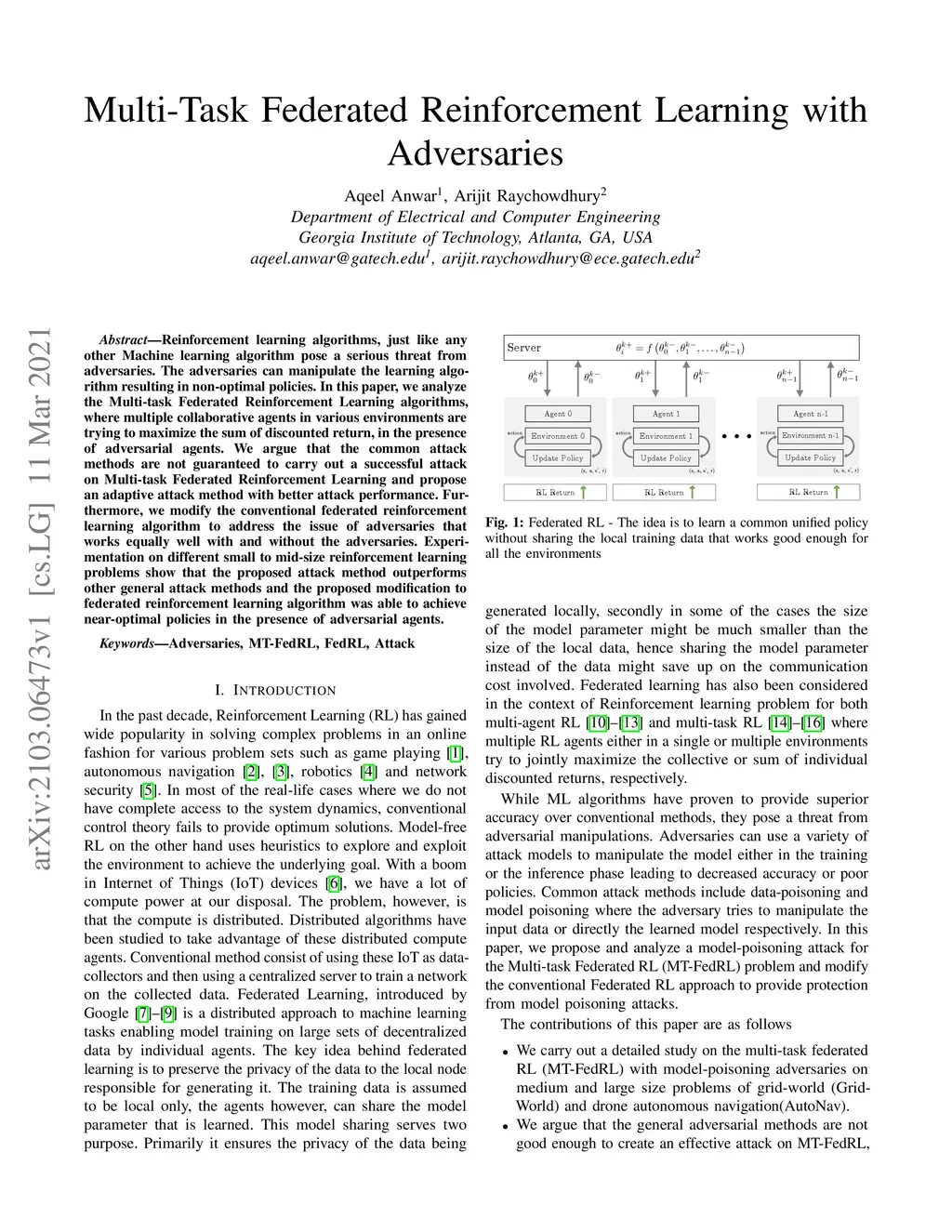 Multi-Task Federated Reinforcement Learning with Adversaries