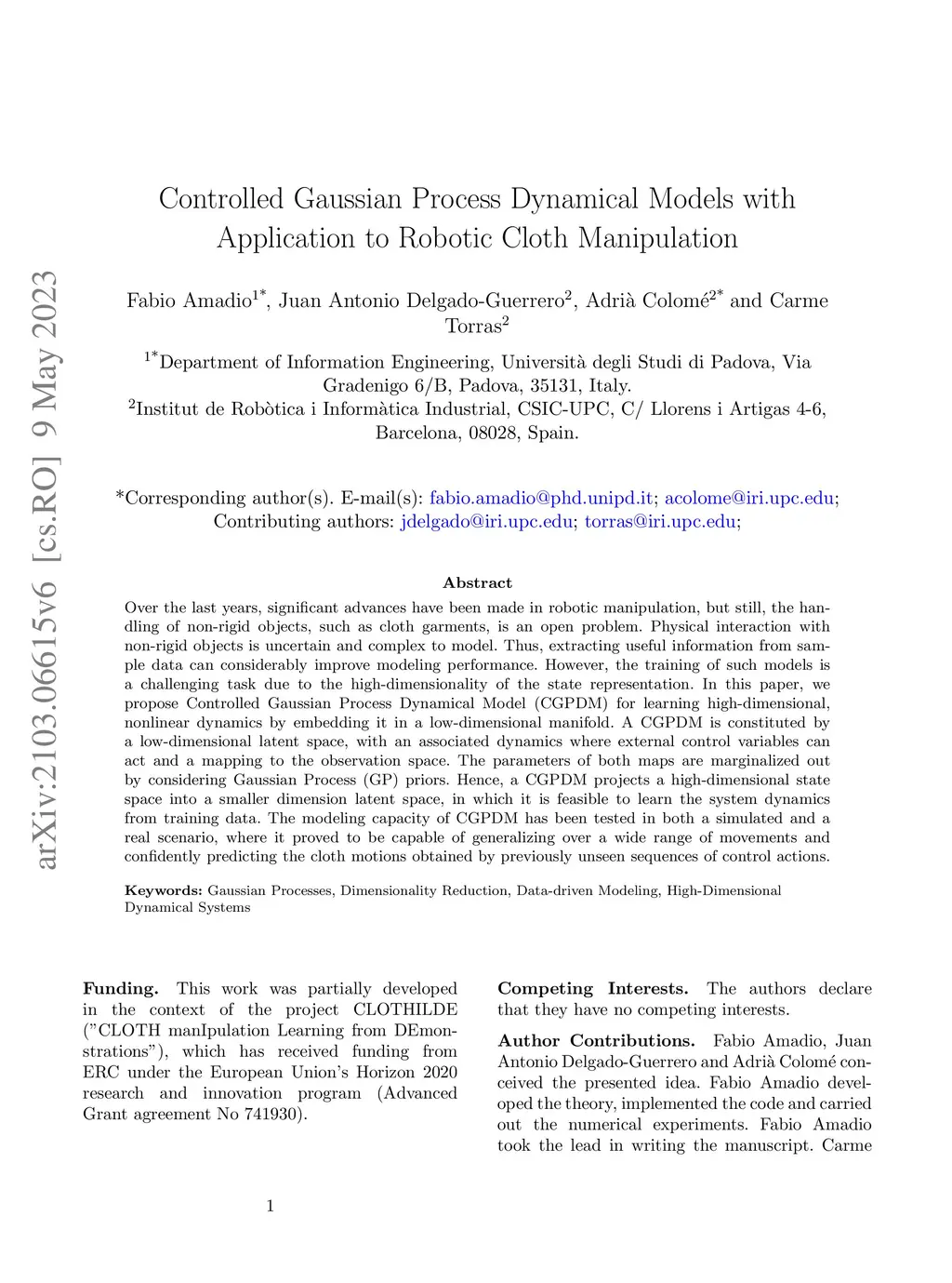 Controlled Gaussian Process Dynamical Models with Application to Robotic