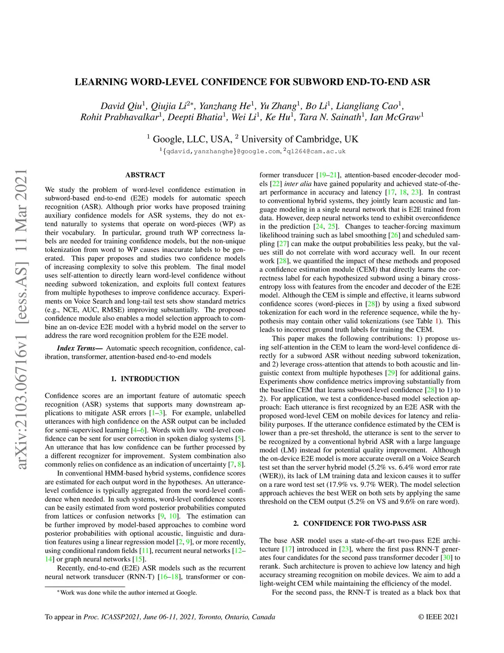 Learning Word-Level Confidence For Subword End-to-End ASR