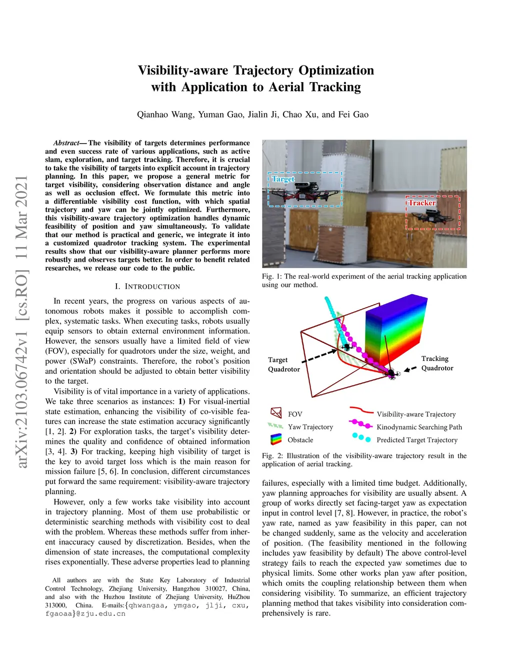 The visibility of targets determines performance and even success rate of various applications, such as active slam, exploration, and target tracking. Therefore, it is crucial to take the visibility of targets into explicit account in trajectory planning. In this paper, we propose a general metric for target visibility, considering observation distance and angle as well as occlusion effect. We formulate this metric into a differentiable visibility cost function, with which spatial trajectory and yaw can be jointly optimized. Furthermore, this visibility-aware trajectory optimization handles dynamic feasibility of position and yaw simultaneously. To validate that our method is practical and generic, we integrate it into a customized quadrotor tracking system. The experimental results show that our visibility-aware planner performs more robustly and observes targets better. In order to benefit related researches, we release our code to the public.