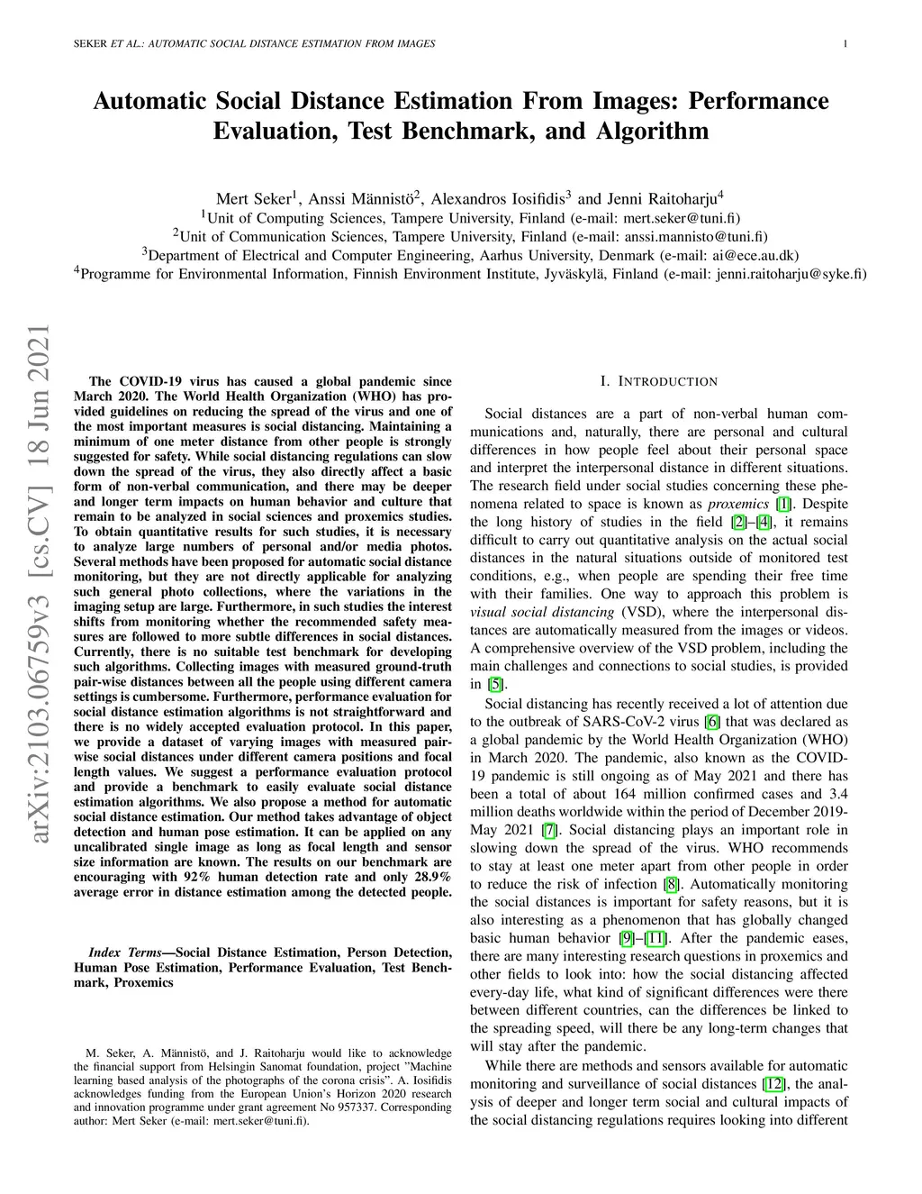 Automatic Social Distance Estimation From Images: Performance