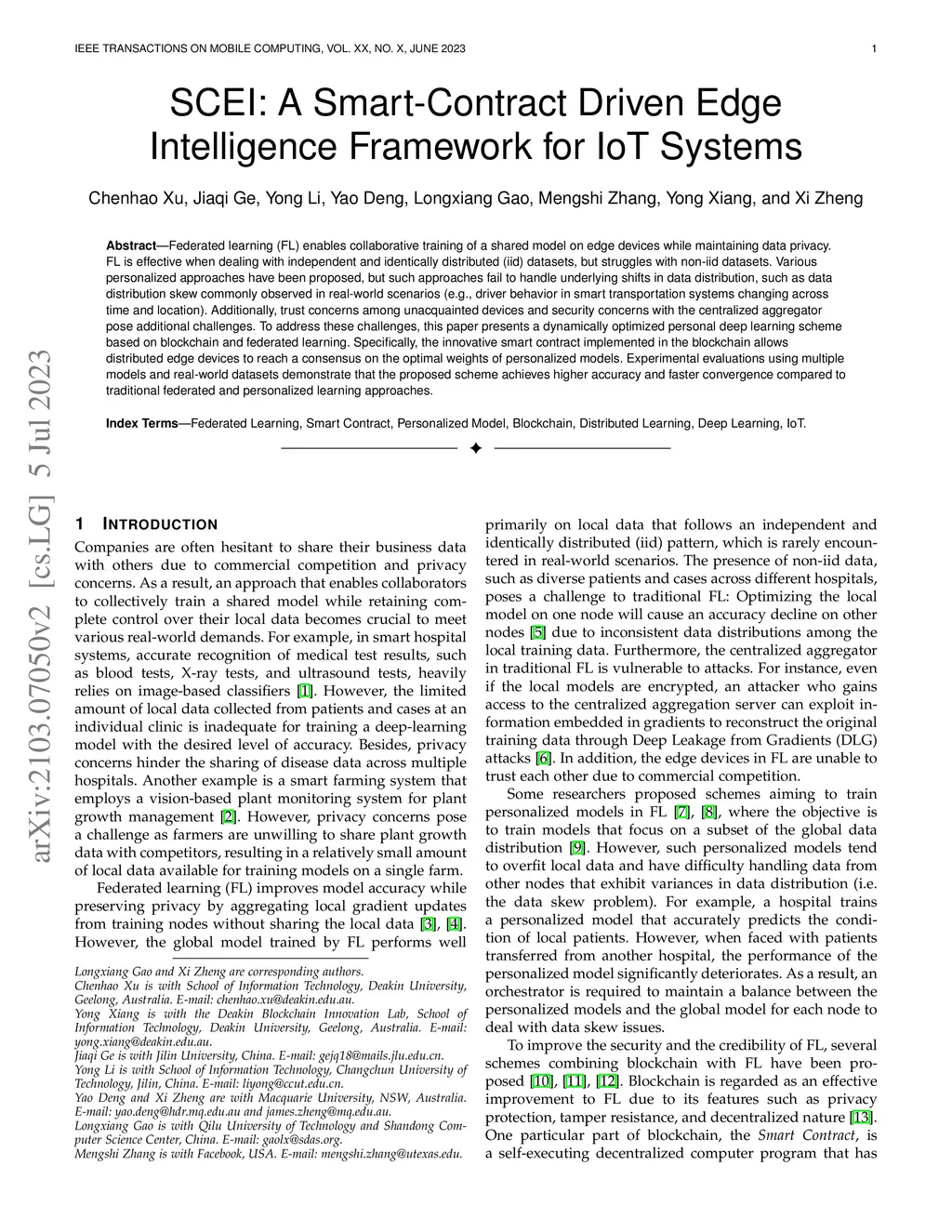 SCEI: A Smart-Contract Driven Edge Intelligence Framework for IoT