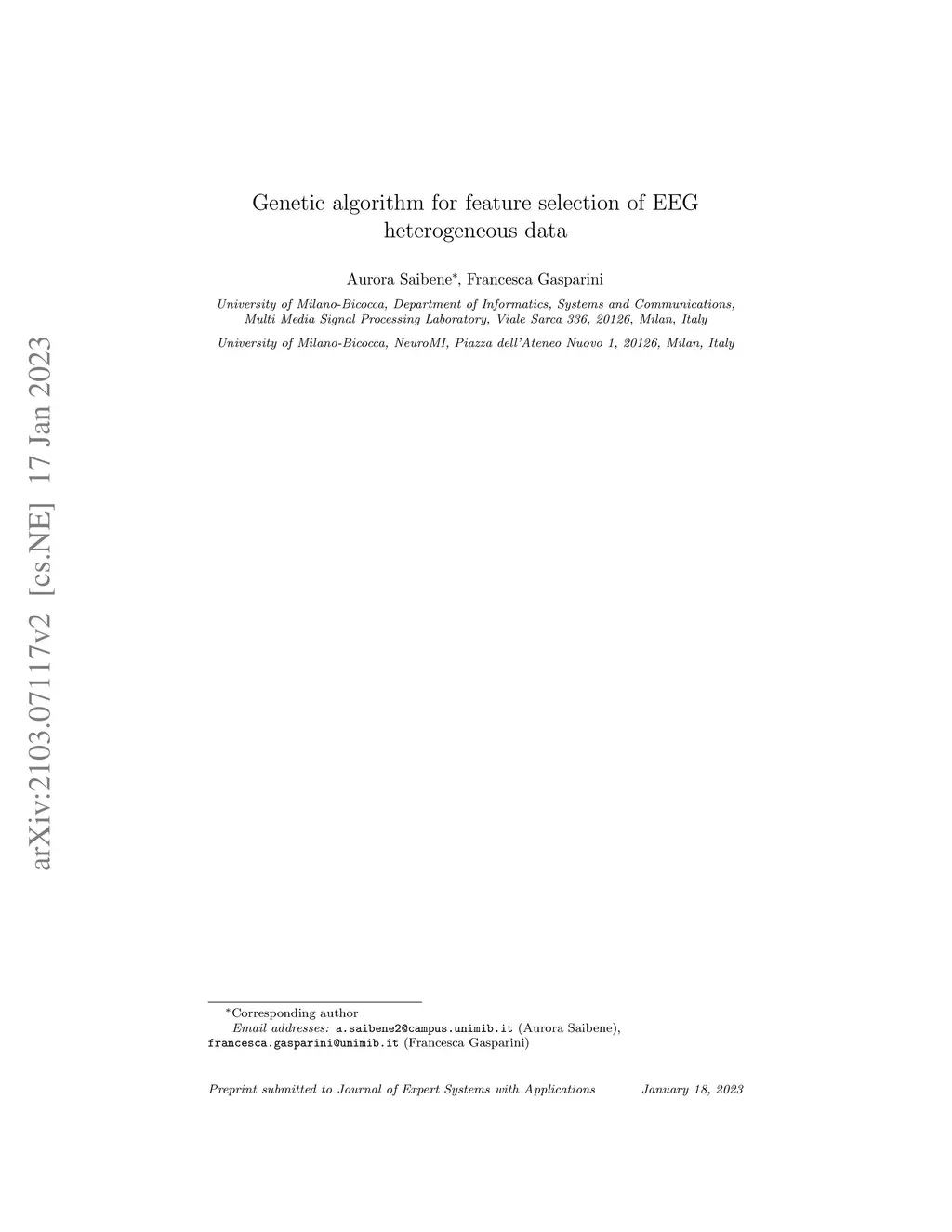 GA for feature selection of EEG heterogeneous data