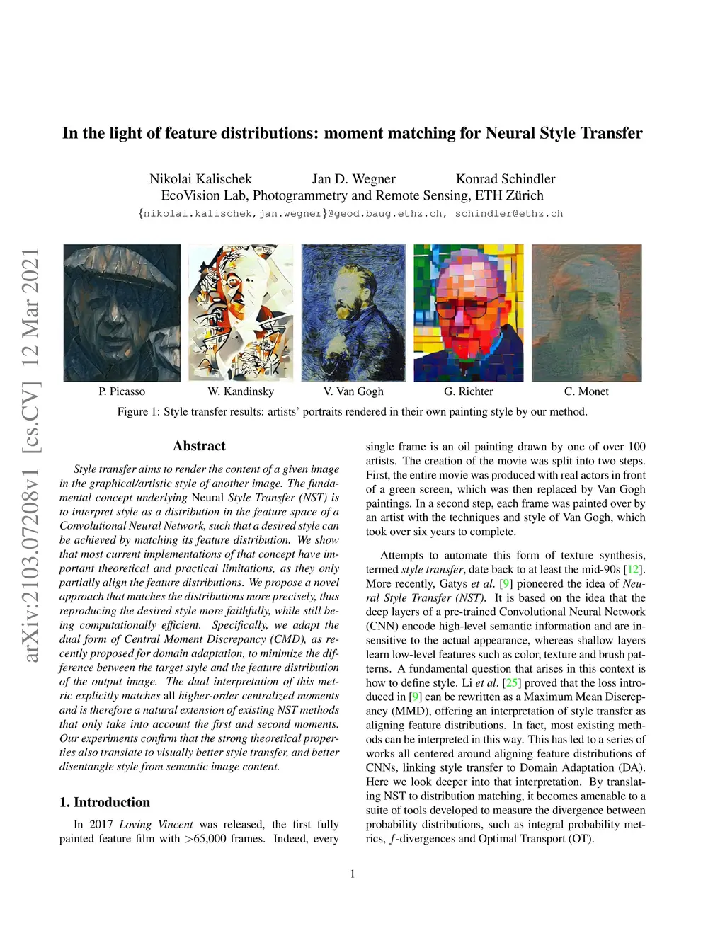 In the light of feature distributions: moment matching for Neural Style
