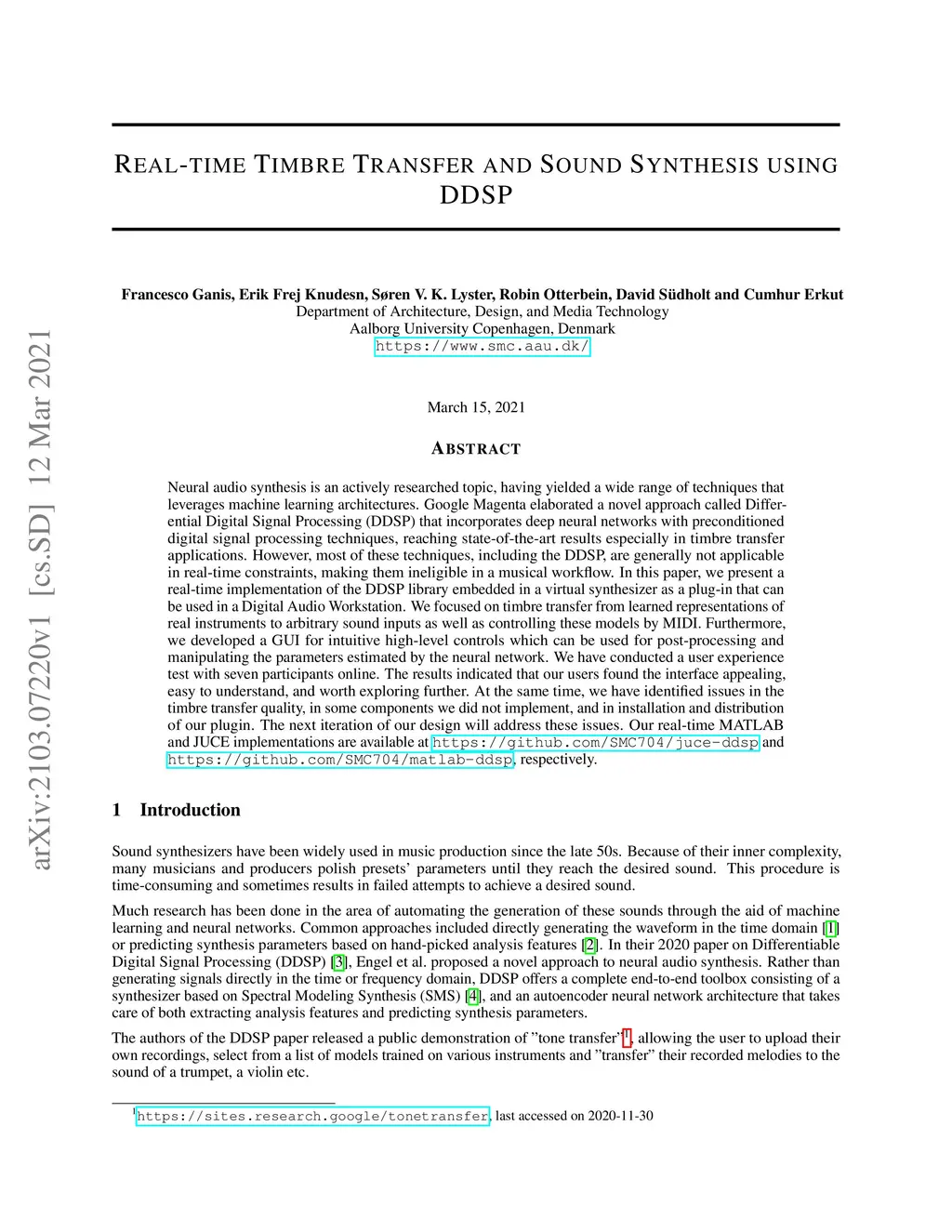 Real-time Timbre Transfer and Sound Synthesis using DDSP