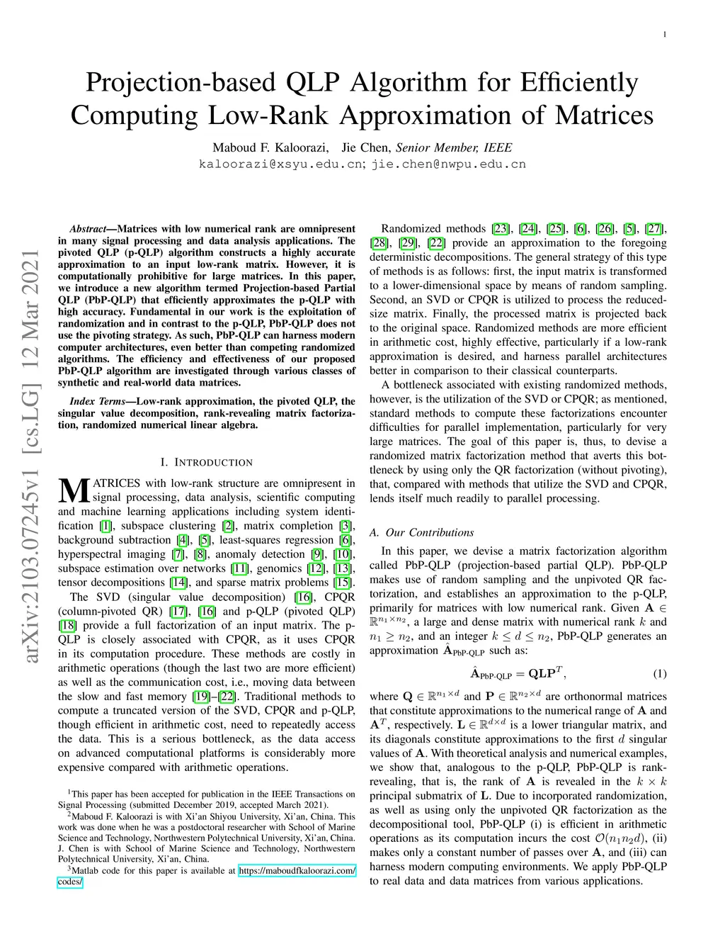 Projection-based QLP Algorithm for Efficiently Computing Low-Rank