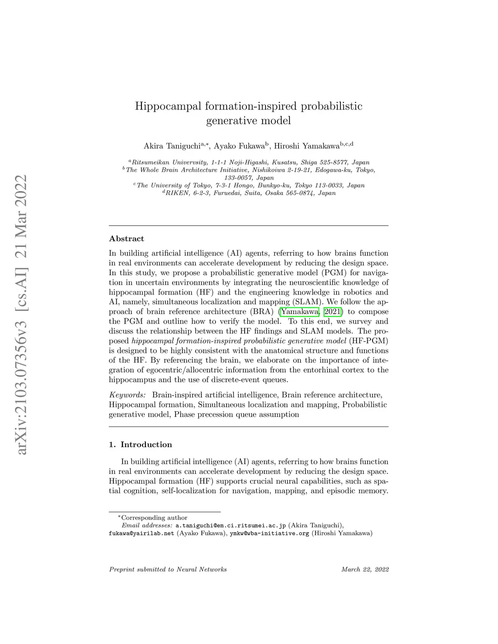 Hippocampal formation-inspired probabilistic generative model