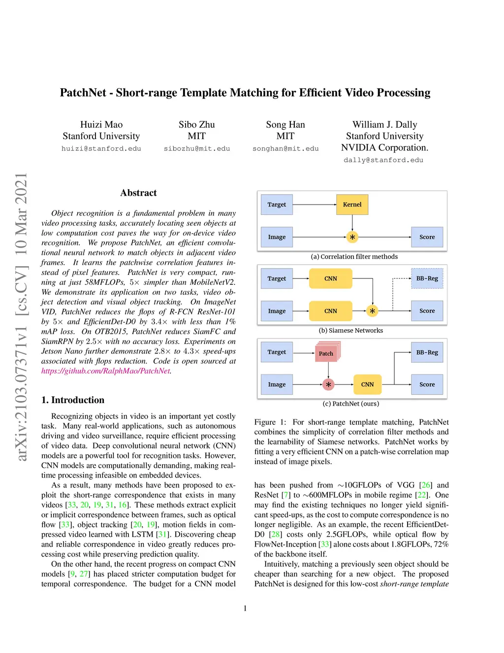 PatchNet -- Short-range Template Matching for Efficient Video Processing