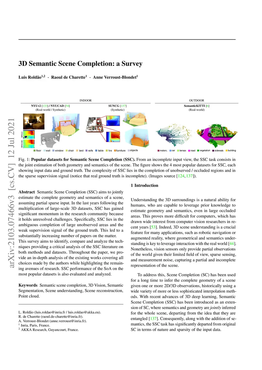 3D Semantic Scene Completion: a Survey