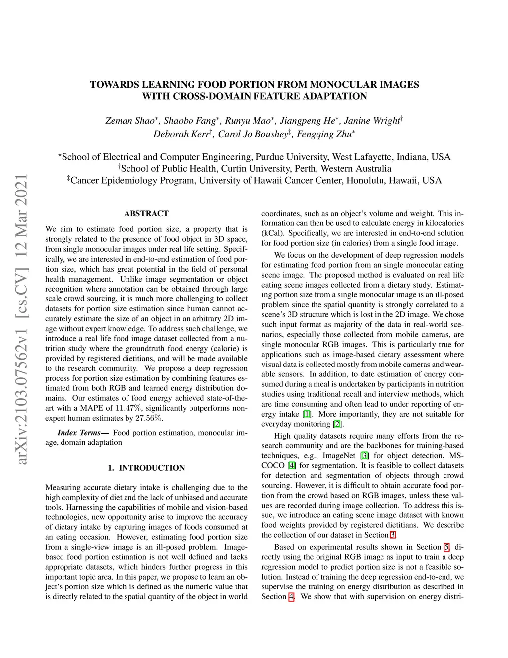 Towards Learning Food Portion From Monocular Images With Cross-Domain